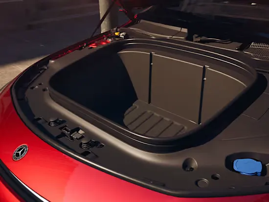 Компактний багажник спереду додає ще 80 літрів об’єму. Він водо- та пилозахищений, ідеально підходить для спортивних сумок, напоїв чи кабелів для заряджання.